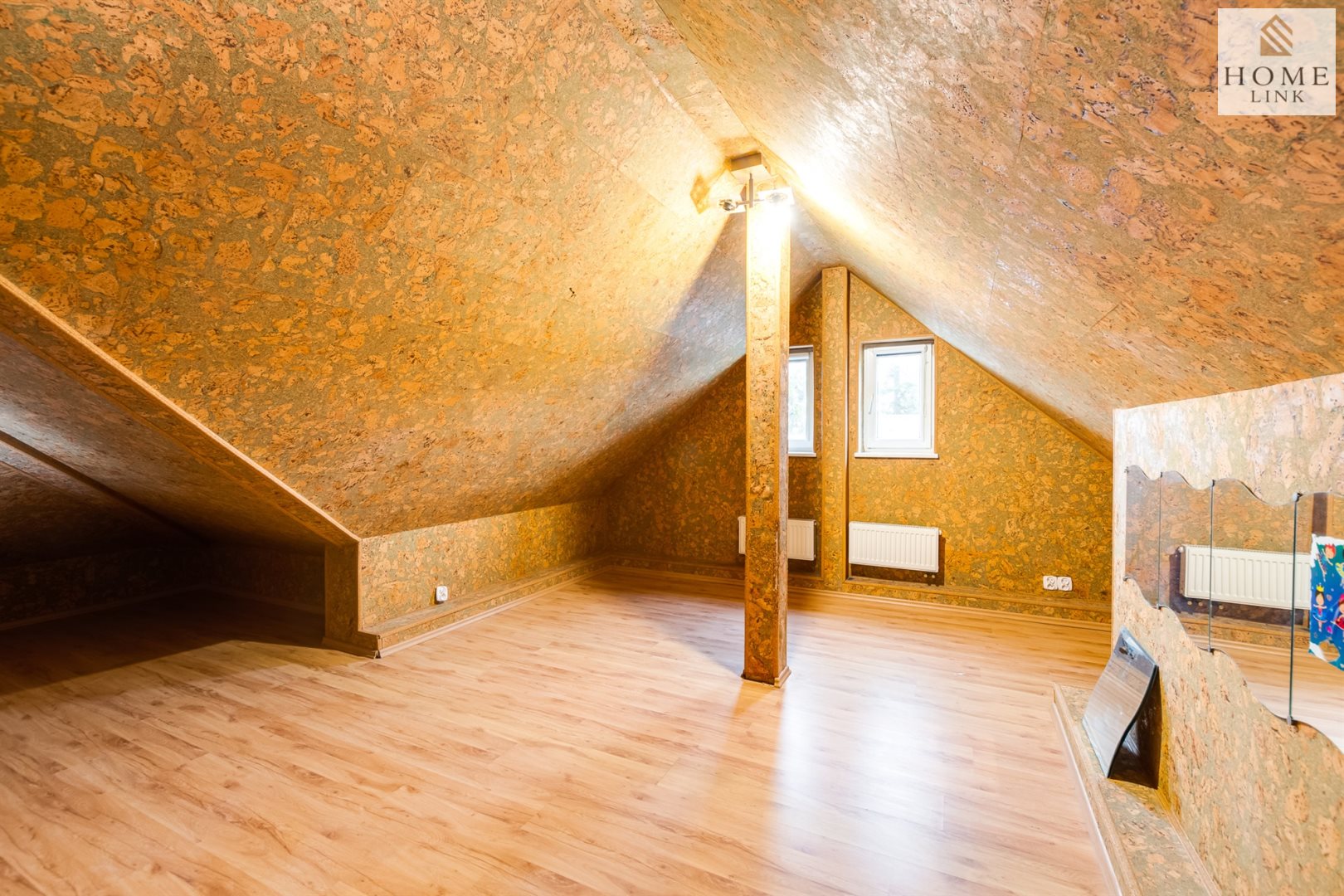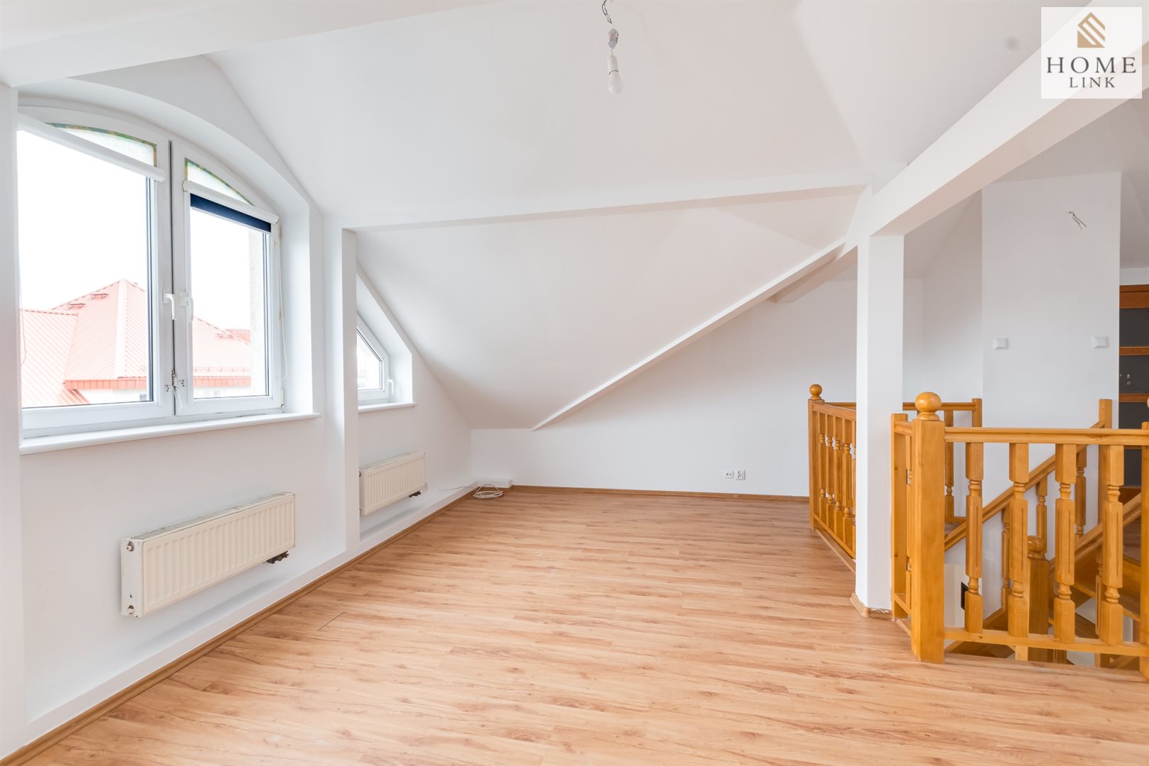 Dwupoziomowość lokalu oraz jego spora powierzchnia otwiera wiele możliwości do aranżacji swojego wnętrza i zagospodarowania go w ciekawy sposób. Poddasze idealnie się sprawdzi na zagospodarowanie miejsca na swoje biuro, własną siłownię czy spożytkowanie całego piętra na przestrzeń dla dzieci, na którym również znajduje się druga łazienka oraz szafa w zabudowie. Ograniczeniem w tym wypadku jest tylko i wyłącznie wyobraźnia. Na parterze w miejscu komunikacji nie ma gresu/terakoty – dlatego wraz z nową kuchnią możesz totalnie dostosować tą przestrzeń tylko i wyłącznie pod siebie. Ściany odmalowane na biało.